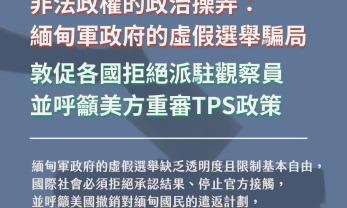 【聯合聲明】緬甸:國際社會應拒絕軍政府的虛假選...