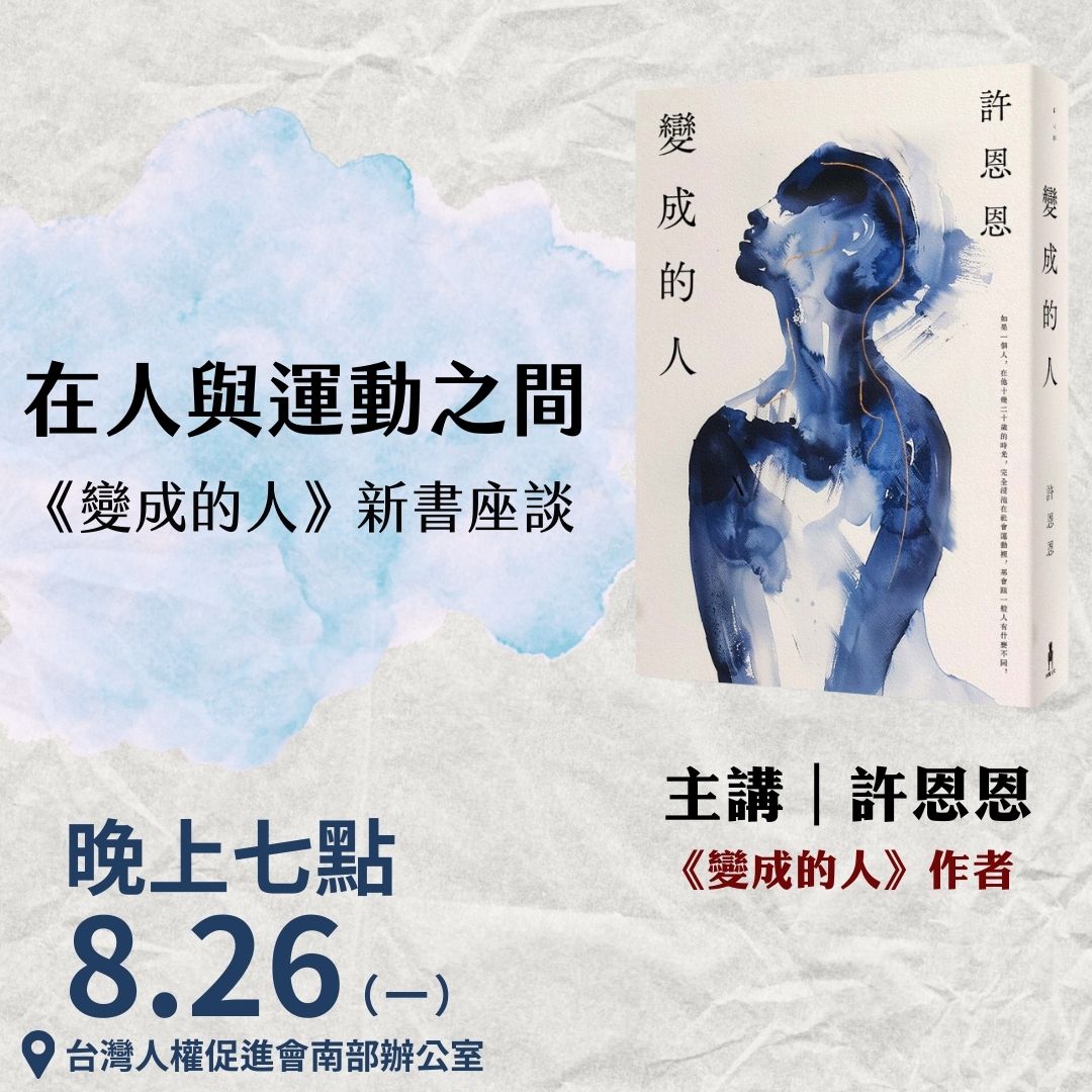 台權會長期倡議集會遊行的制度保障,期待為公民社會撐出更大的發聲空間,而本次我們邀請長期參與,也記錄台灣社會運動的許恩恩,透過新書《變成的人》將視角聚焦在微觀的「行動者」身上,在巨觀的制度與事件之下,看見這些嘗試推動改變的人們,以及他們身上曾發生的歷程與故事,而這些經歷究竟帶來了哪些改變,或被改變?
