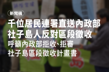 千位居民連署直送內政部 社子島人反對區段徵收 呼籲內政部拒收、拒審社子島區段徵收計畫書