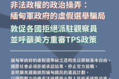 我們敦促國際社會向緬甸人民表達聲援,並支持他們對真正自由與民主的要求。